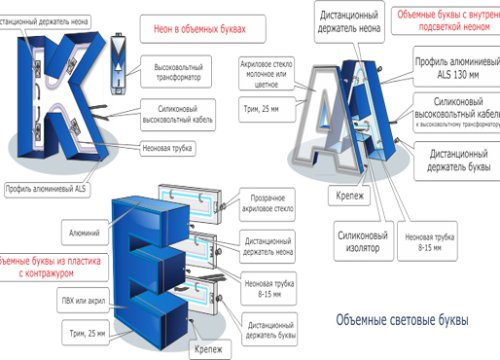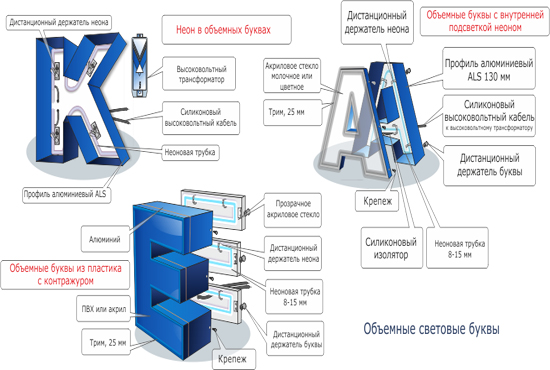 Какие бывают виды рекламных букв (плоских, объемных)?