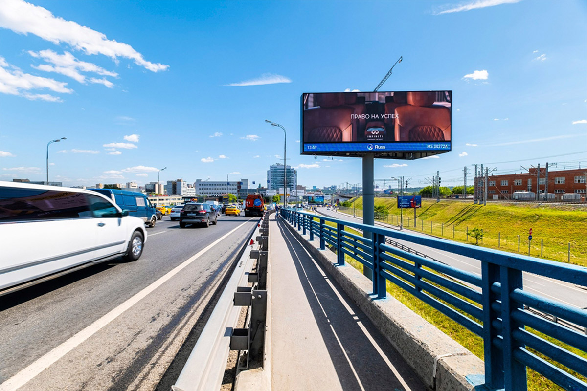 Дополнительно необходимо отметить, что яркость экрана автоматически регулируется в зависимости от погодных условий, что существенно улучшает видимость рекламы даже в самый яркий солнечный день. К слову, яркость диджитал-суперборда в солнечный день доходит до 100%. В ночное время этот показатель составляет от 10 до 35% (в соответствии с требованием ФЗ «О рекламе»).