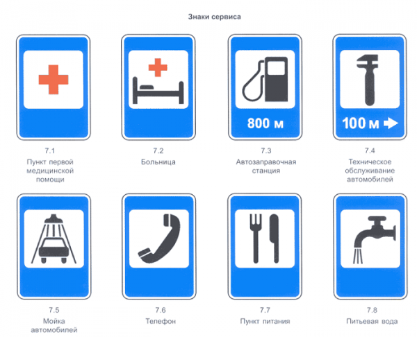 Место для информационных знаков или дорожных указателей выбирают в начале отрезка пути, на котором расположен объект инфраструктуры. Такие знаки устанавливаются, как правило, за 100 – 200 м. до рекламируемого объекта инфраструктуры. Итак, дорожные знаки в рекламных целях разрешено устанавливать: