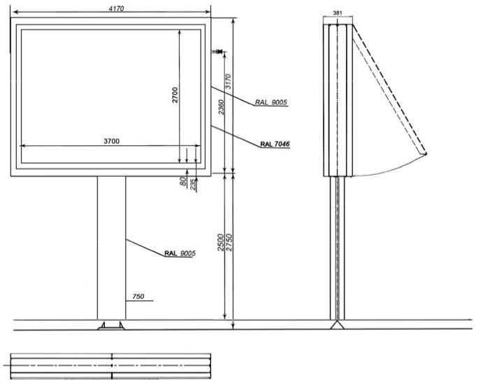 Среднее время демонстрации рекламного материала составляет от 5 до 10 секунд в зависимости от очередности расположения рекламного постера. Скроллеры (ситиборды) имеют габариты 2,7 x 3,7 м. Площадь рекламного поля составляет порядка 10 кв. метров. Необходимо отметить, что рекламное объявление, размещенное на скроллере (ситиборде), хорошо защищено от актов вандализма. Хорошая защищенность рекламного объявления достигается за счет расположения постера под ударопрочным стеклом на высоте более 3 метров от земли. Дополнительно необходимо указать, что рама скроллера (ситиборда) не имеет петель, а стекла проклеены резиновой прокладкой, что предотвращает попадание пыли и влаги (степень влагозащиты – IP54) внутрь рекламной конструкции.