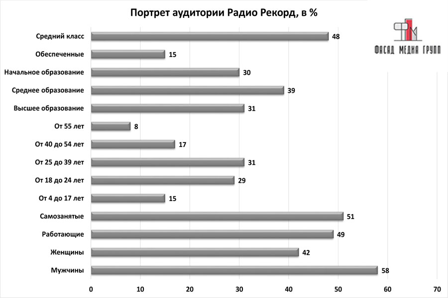 Целевая аудитория рекламы на «Радио Рекорд» в Губкине обширна. «Радио Рекорд» слушают: