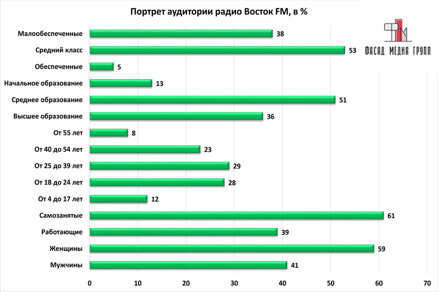 На вопрос: «Какова целевая аудитория «Восток ФМ»? - можно указать следующее: