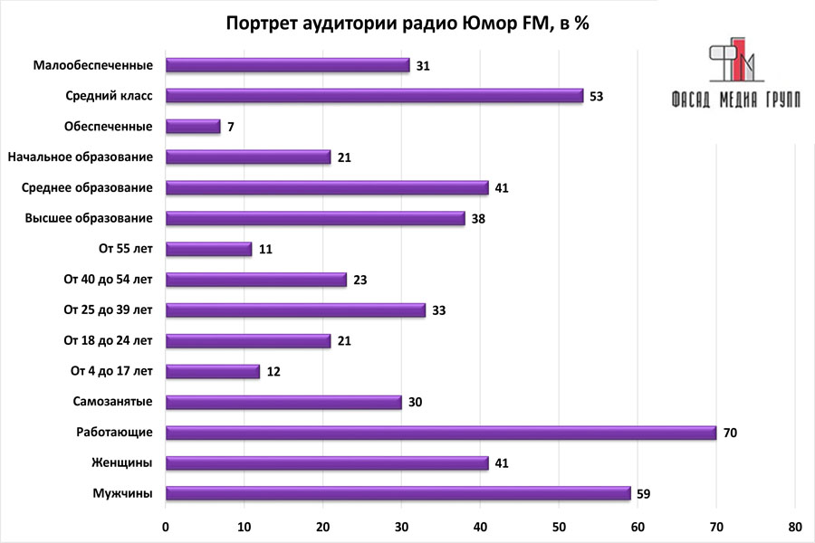 Целевая аудитория рекламы на радио Юмор ФМ в Губкине