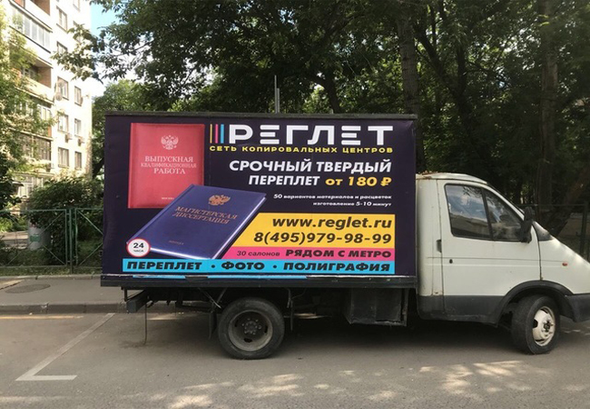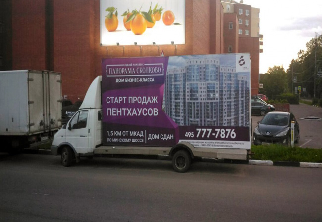 Приводим примеры монтажа рекламы на мобильных билбордах: