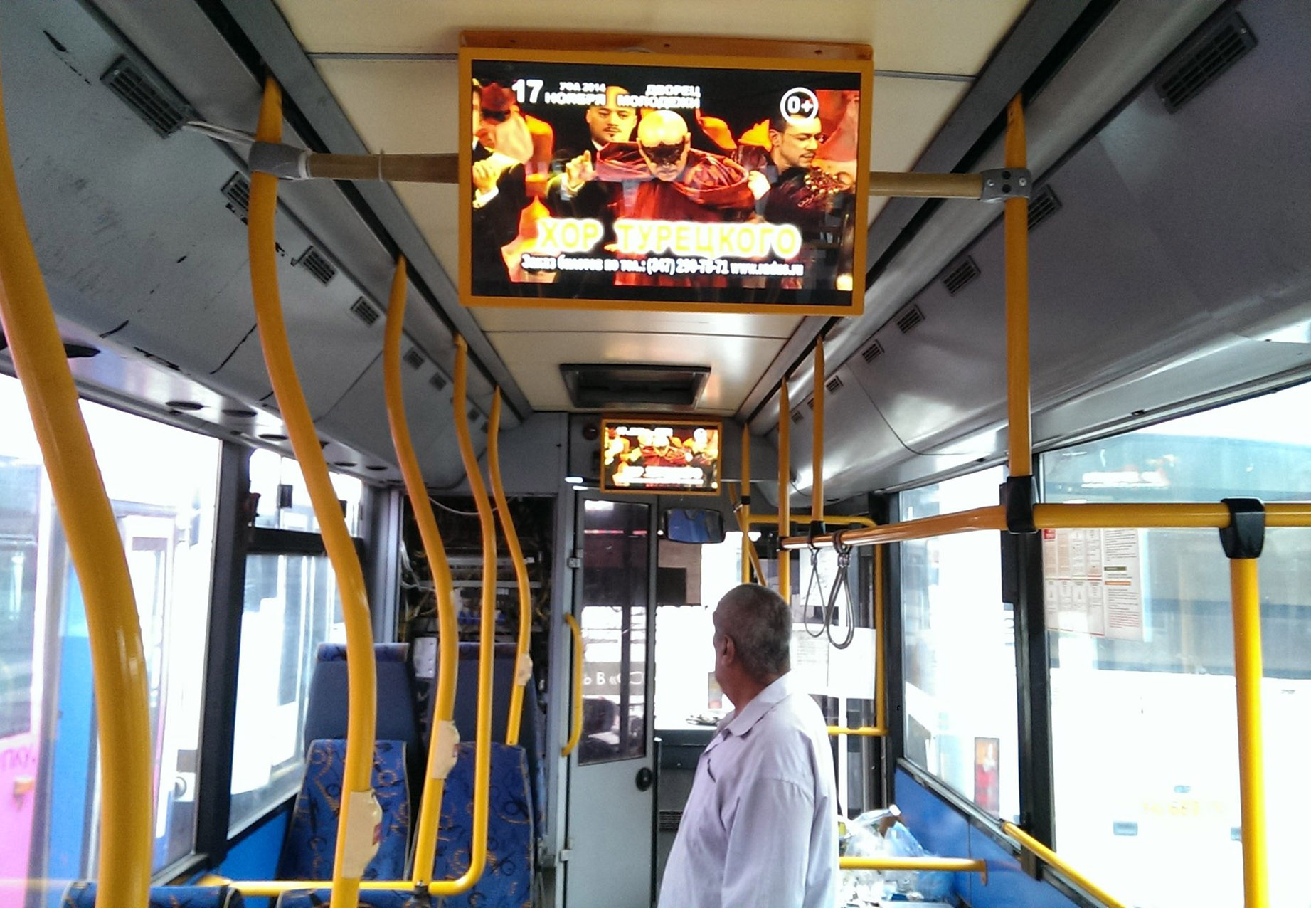 Напомним, что рекламу в автобусах в Губкине можно разместить как в виде стикера, афиши, бортовой оклейки, так и запустить трансляцию рекламного ролика на установленных в салоне транспортного средства мониторах.