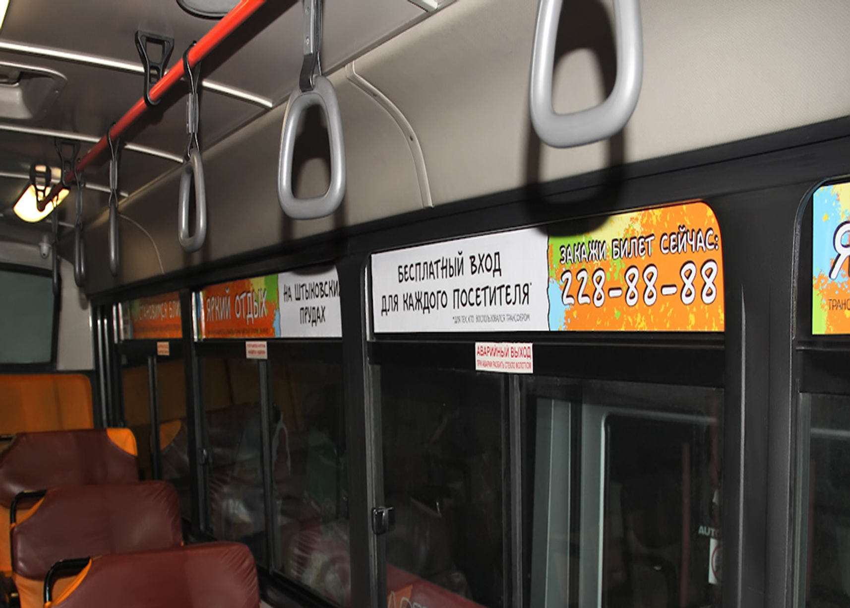 Как обеспечить массовый охват населения, размещая рекламу на автобусах, если денег на рекламу выделено не так много? В этом случае мы советуем использовать внутрисалонные форматы, а также брендирование заднего стекла или заднего борта транспортного средства. Указанные форматы являются относительно недорогими и по карману многим рекламодателям. Уверяем, что размещение рекламы на автобусах может себе позволить даже организация с небольшим рекламным бюджетом.