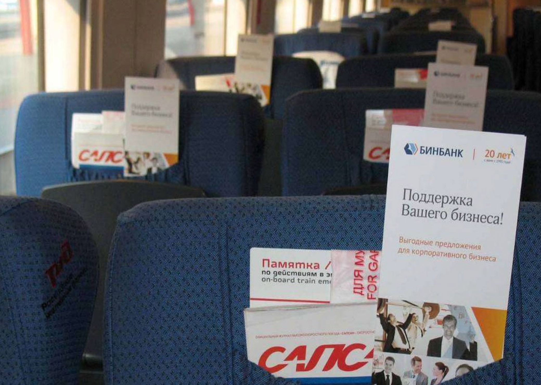 Монтаж рекламы в поездах дальнего следования осуществляется по-разному в зависимости от того, какой рекламный материал и где размещается.