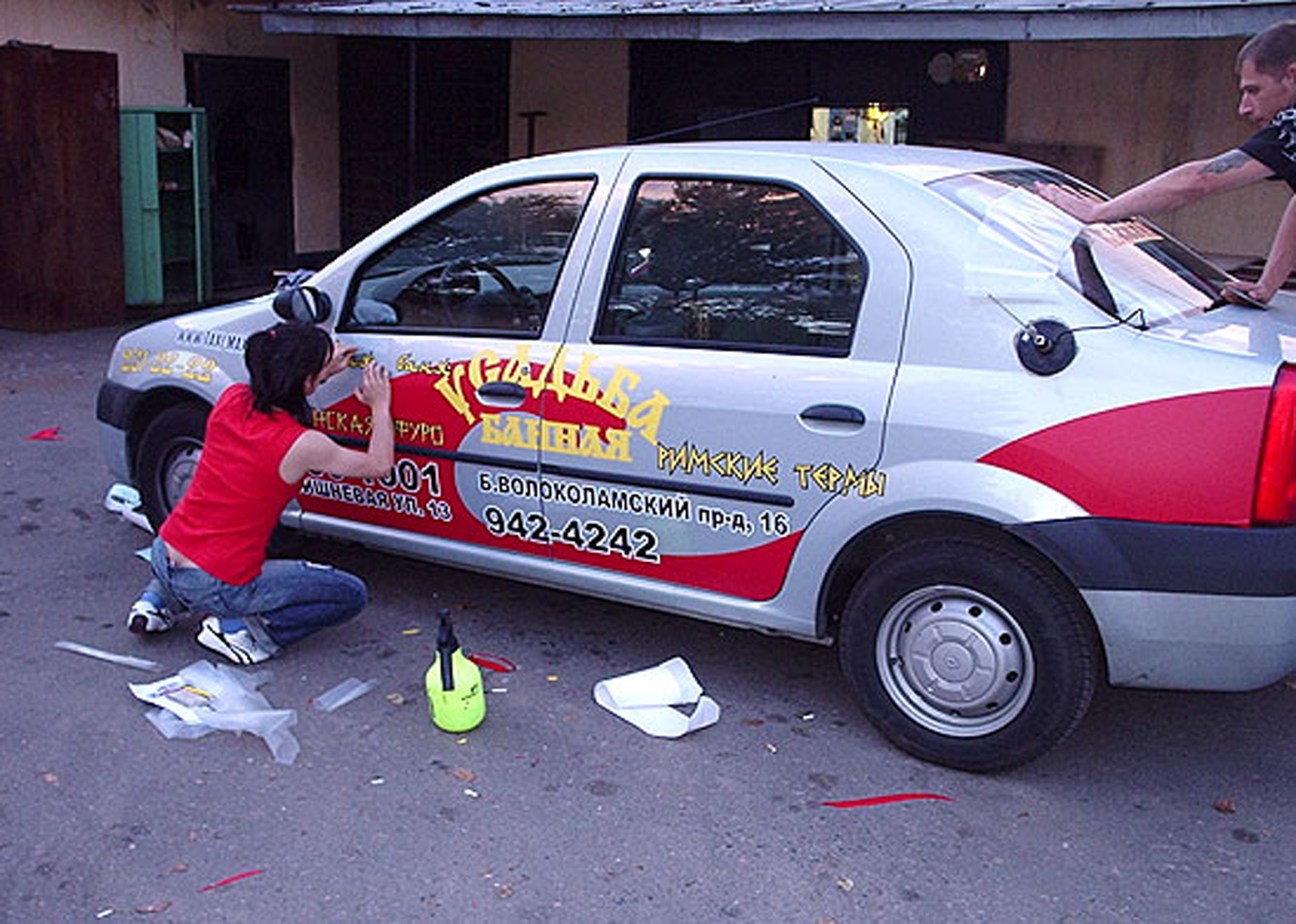 Оклейку такси рекламой или размещение рекламных стикеров внутри салона такси осуществляют специалисты ООО «Фасад Медиа Групп», которые обладают большим опытом работы. Каждый из наших рабочих, занятый в брендировании такси, прошел специальную подготовку и получил допуск от руководства к монтажным работам. В случае, если при выполнении работ наши работники причинили ущерб либо заказчику, либо владельцу транспорта, мы возмещаем данный ущерб за собственный счет.