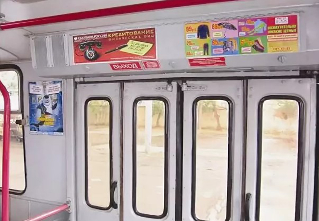 Монтаж рекламы в троллейбусах осуществляется по-разному в зависимости от того, какой рекламный материал и где размещается.