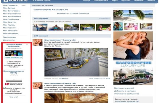 ВКонтакте дает большие возможности для реализации смелых креативных идей. Реклама в сети предоставляет широкое поле для маневра дизайнерам, программистам, веб-мастерам. Анимация, компьютерная графика, виртуальная реальность – все это недоступно, скажем, для рекламы в лифтах, остановках, радио или на транспорте. Но это то, что есть и применяется в Интернет-рекламе, это именно то, что делает рекламу в ВКонтакте популярным и эффективным средством для продвижения товаров и услуг.