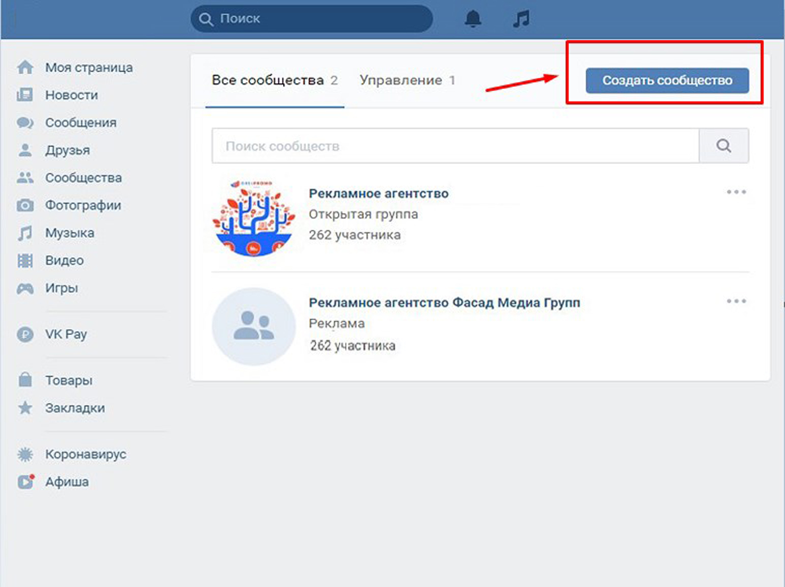 2) Реклама в сообществах ВКонтакте. Подписка на группы, страницы и мероприятия.