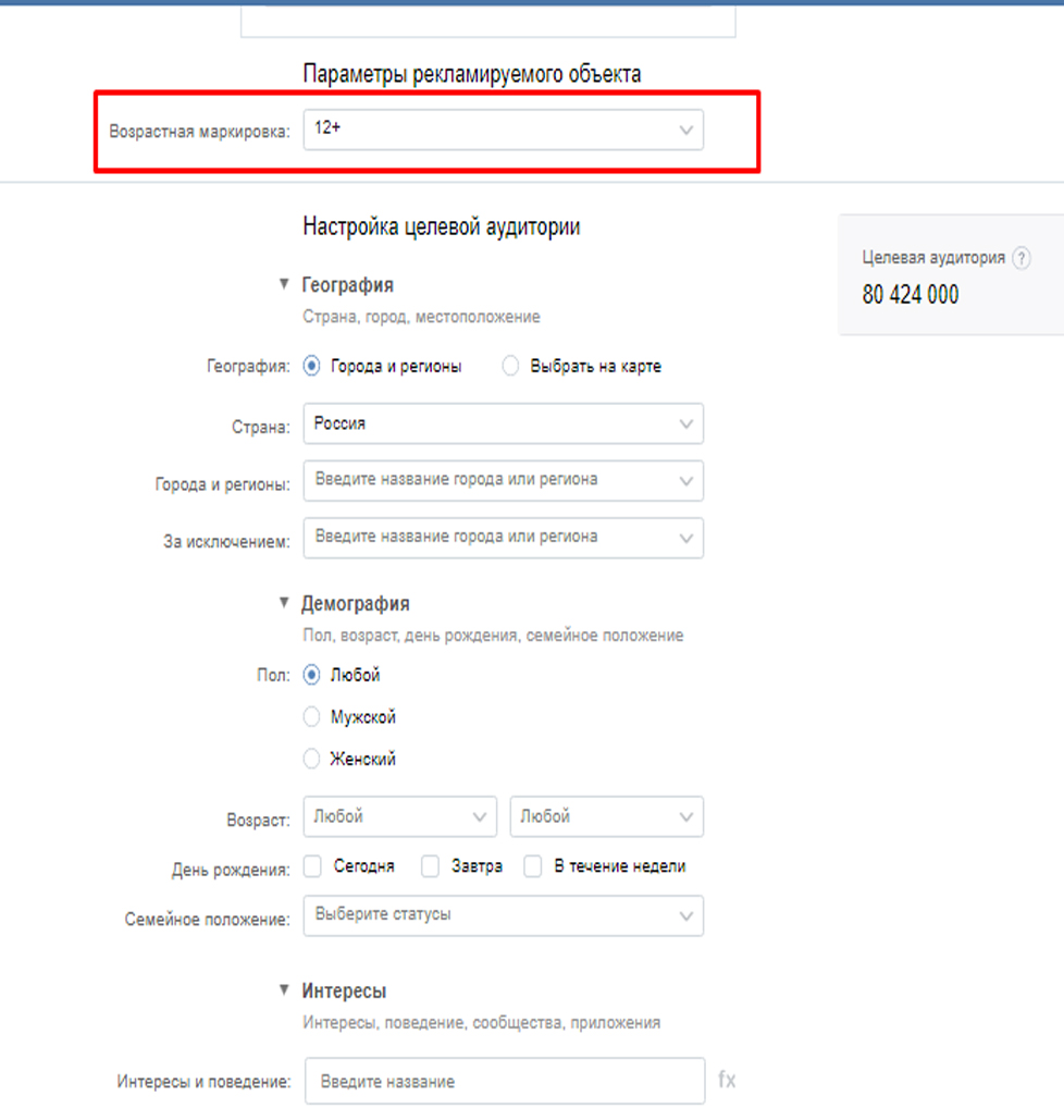 1) укажите возрастную маркировку вашего рекламного объявления ВКонтакте.