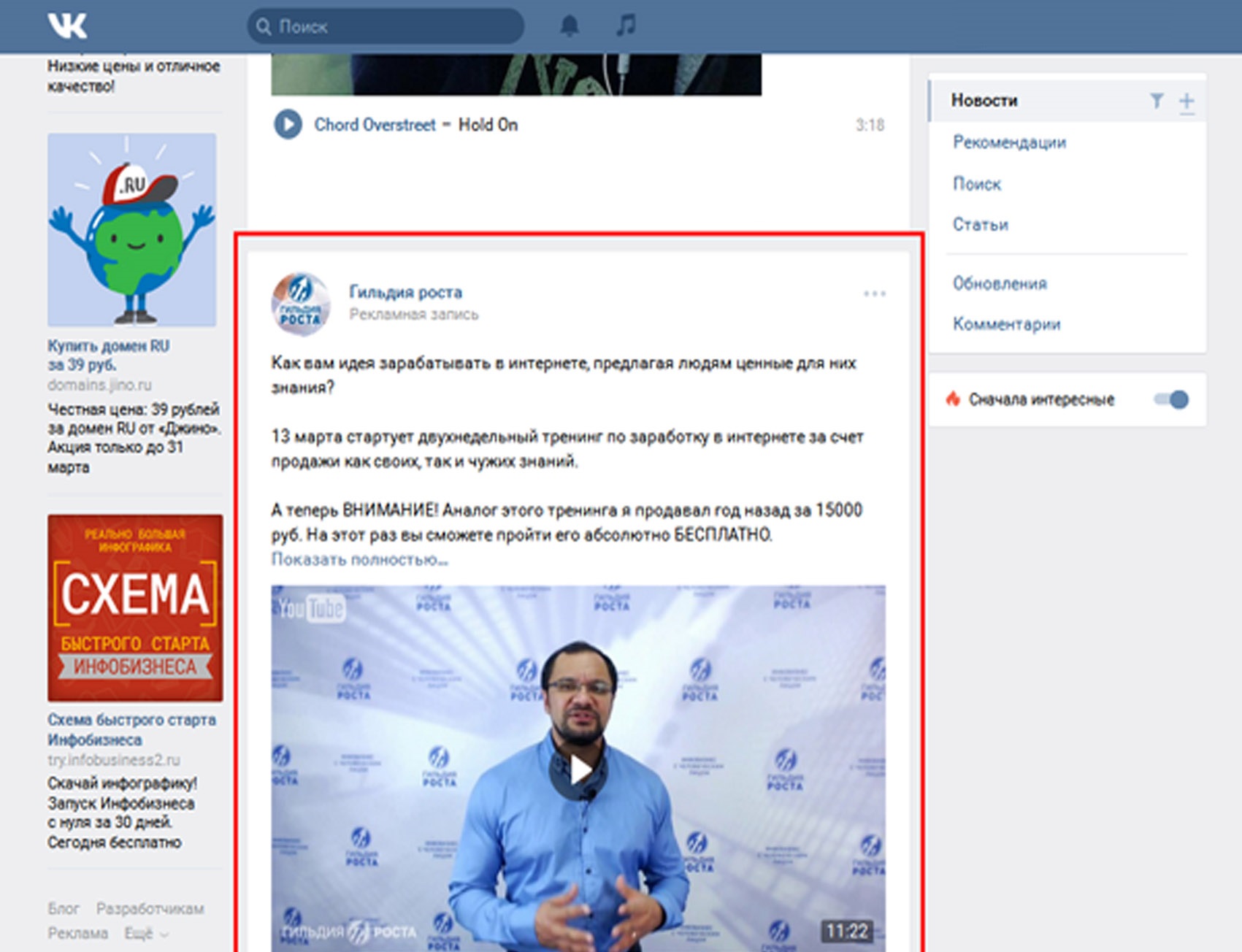 8) Реклама личной страницы ВКонтакте. Реклама личной страницы и записей на личной странице.