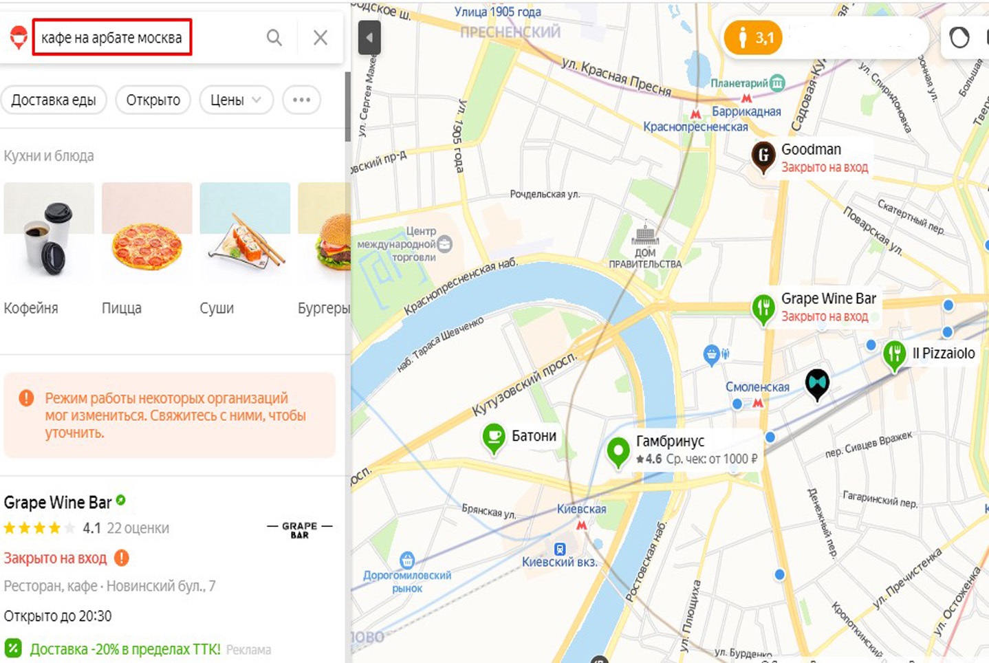 2.2. георекламу в Яндексе. Геореклама представляет тип Интернет-рекламы, при котором рекламные объявления демонстрируются пользователям в зависимости от места их нахождения. Следовательно, пользователю доступны магазины, офисы, фирмы. магазины, кафе, и другие инфраструктурные объекты, которые находятся поблизости или в определенном заданном радиусе от него. Существуют следующие виды георекламы: гиперлокальный таргетинг, локальный таргентинг, навигационная реклама.