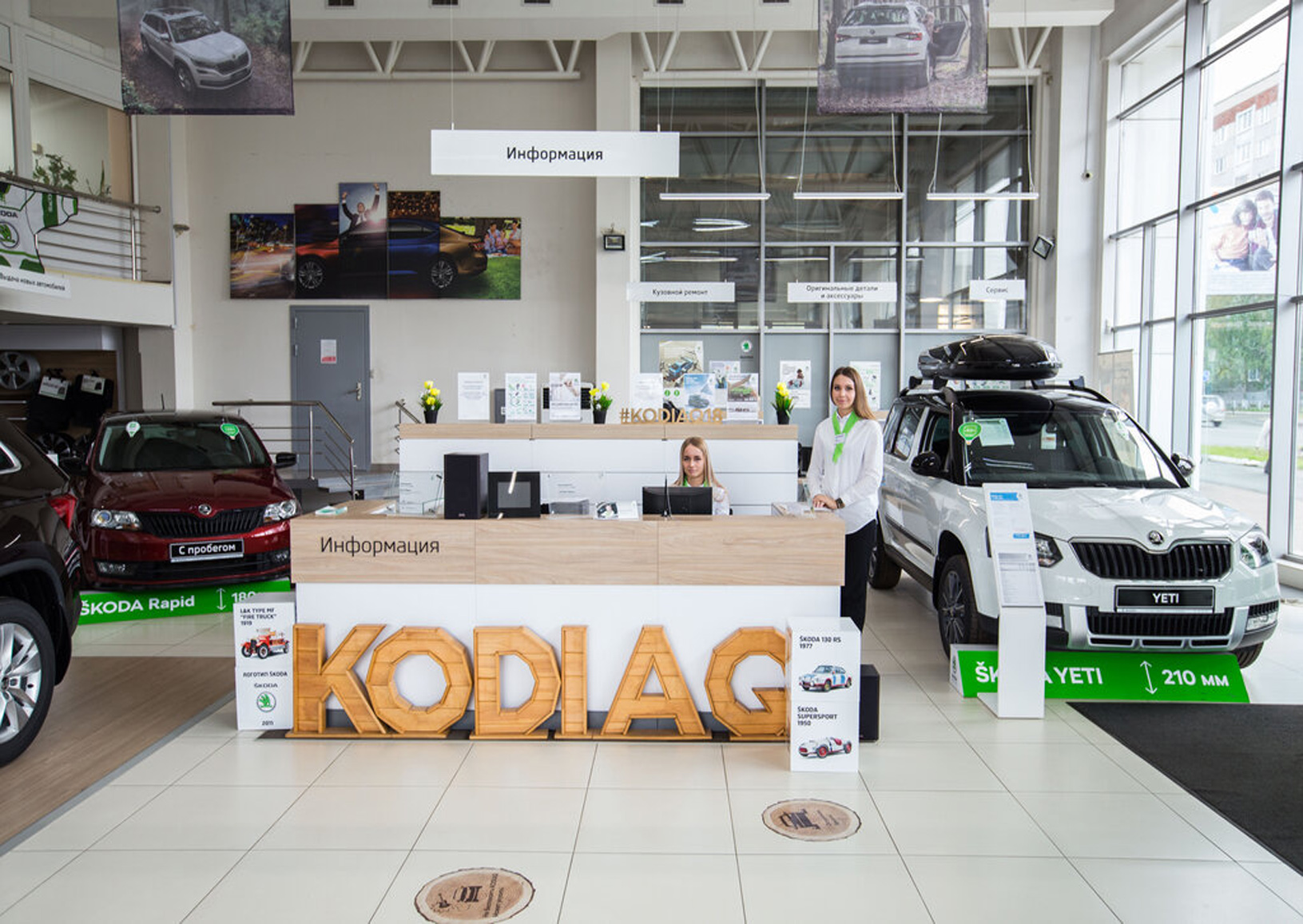 Пример брендирования входа и зоны ресепшн в автосалонах: