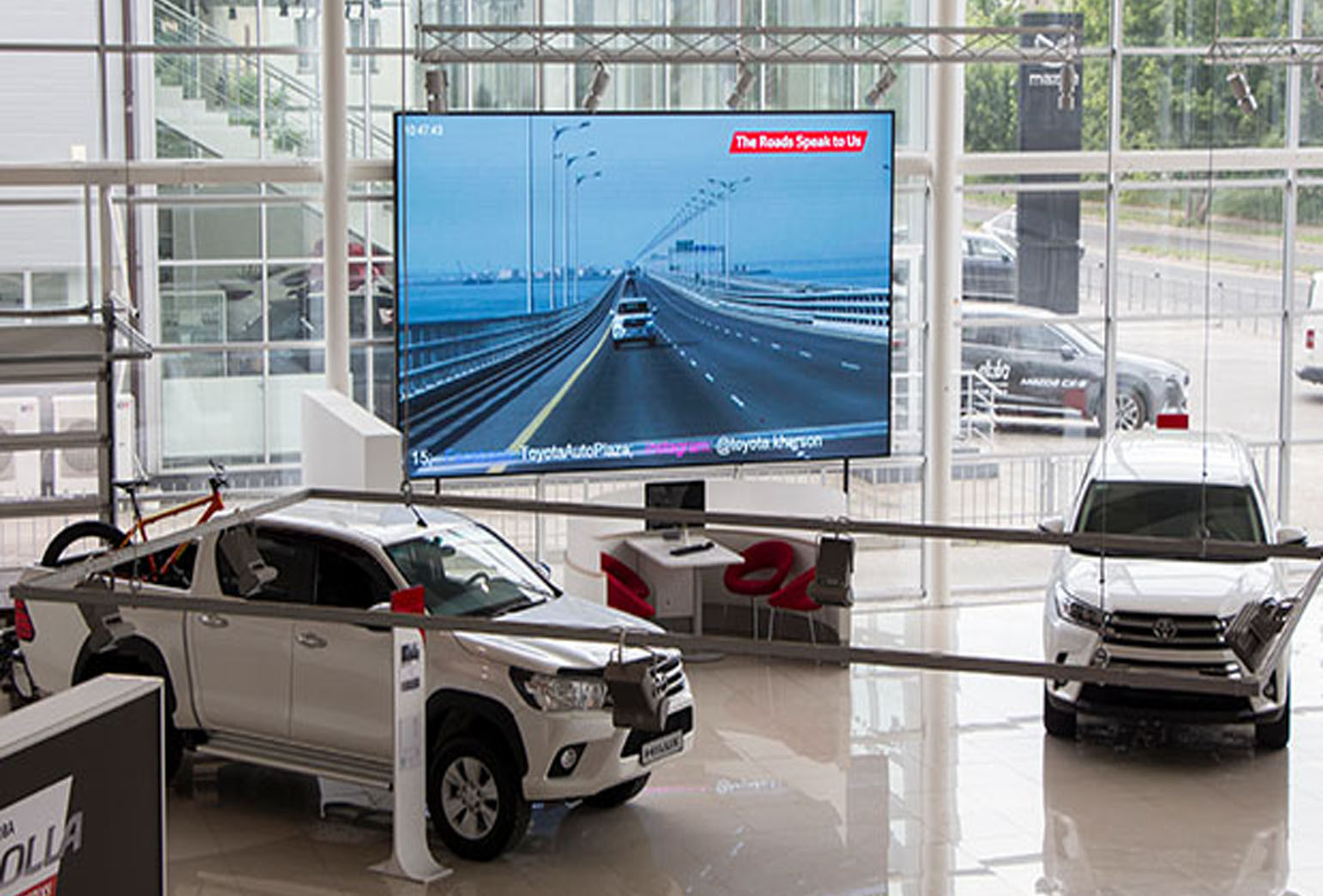 Примеры наших работ при размещении рекламы в автосалонах представлены ниже: