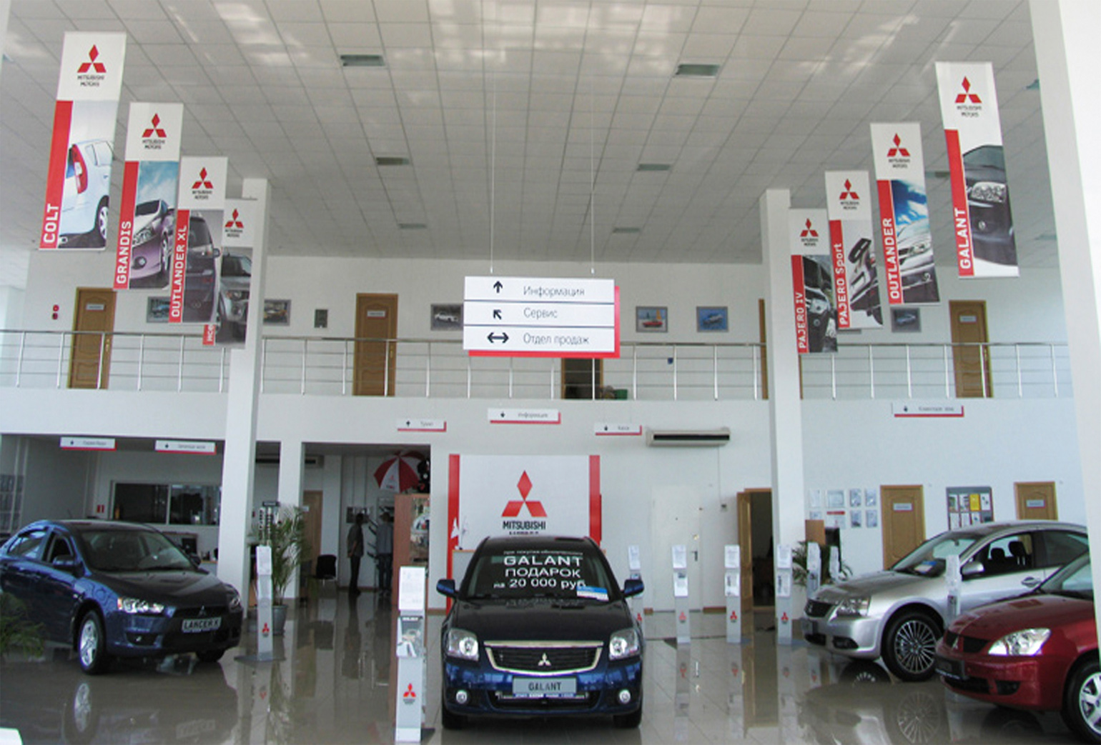 Пример рекламы под сводом в автосалоне: