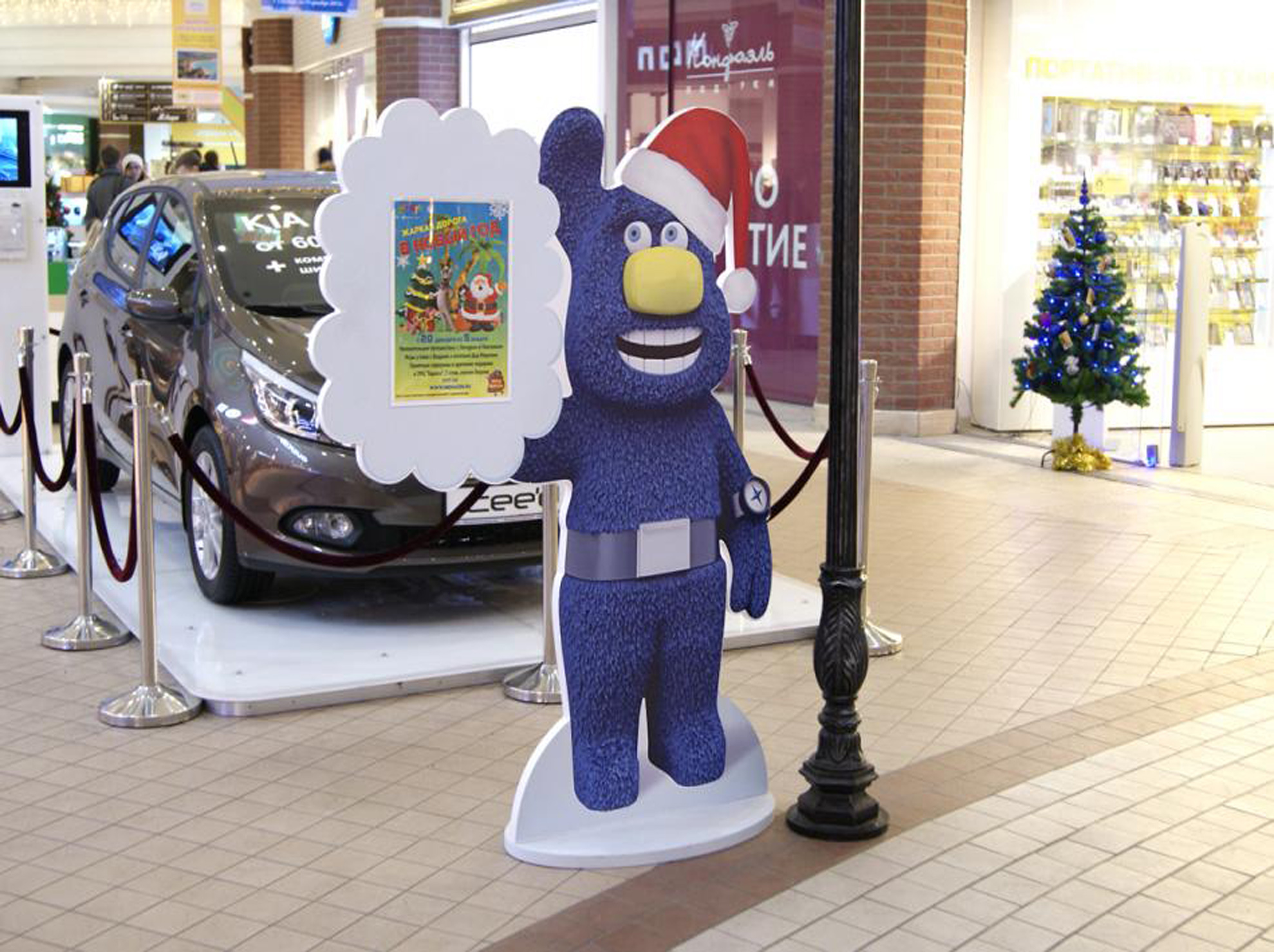 Пример рекламы в виде ростовой фигуры в автосалоне: