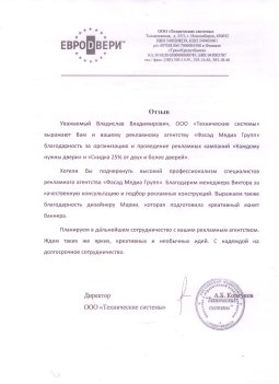 Предоставление указанной выше информации является необходимым условием получения ценового предложения (прайса). После получения указанной информации наши менеджеры смогут подготовить коммерческое предложение с учетом условий вашей рекламной кампании.