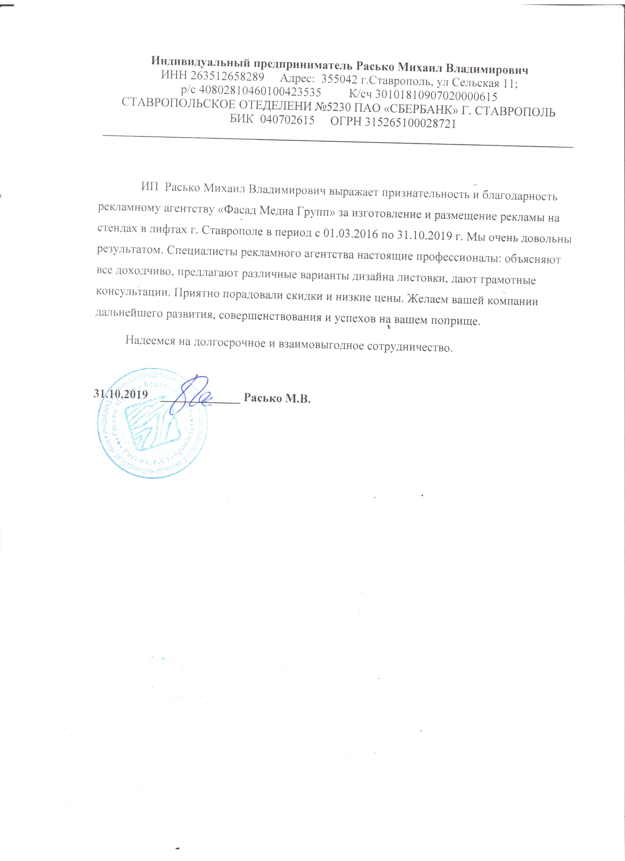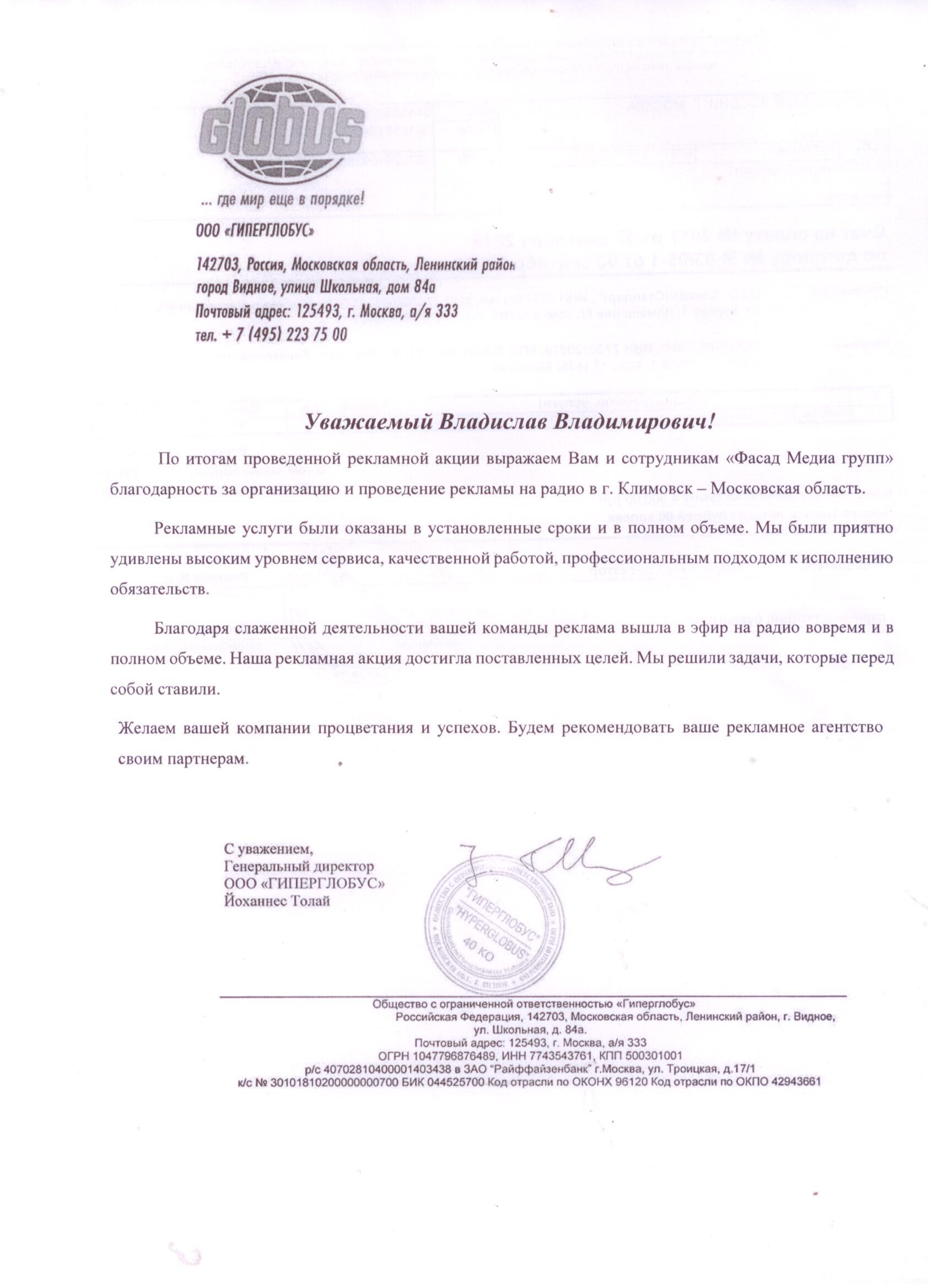 Внимание! Мы работаем по 100% предоплате. После поступления денежных средств начинается процесс изготовления и размещения рекламы. Днем поступления оплаты считается день зачисления денежных средств на расчетный счет ООО «Фасад Медиа Групп».